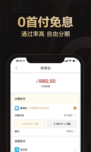 2、然后就会出现一个“分期支付”的功能界面当中,通过这个选项的话会自动给你推荐你想要的商品啦!