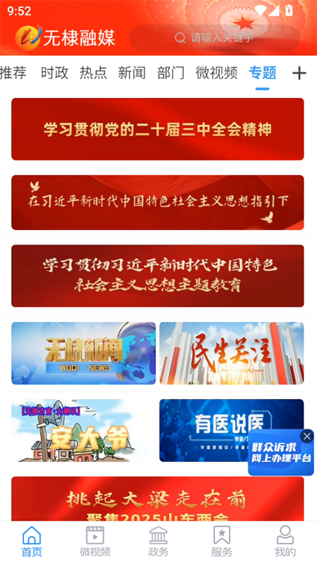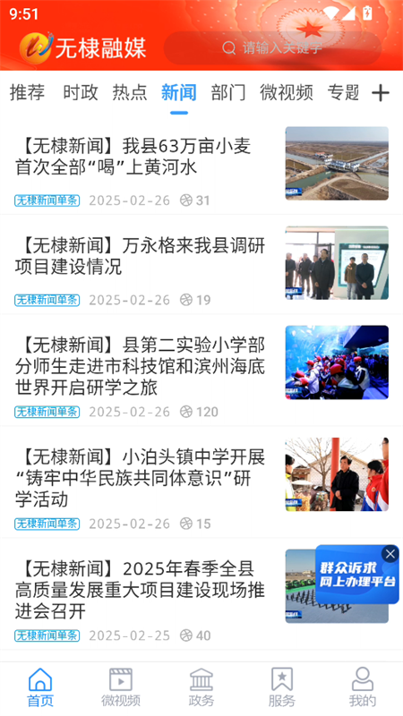 无Interface融媒app是为本地居民打造的一款新闻资讯类软件,无诃融媒体app涵盖了当地的新闻以及生活服务等多个方面。在用户查看时能够更加方便快捷!还支持自定义设置个性化的推送内容和通知信息哦!感兴趣的话就赶紧下载使用吧。