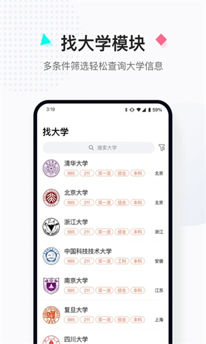 高考志愿填报助手app是一款非常实用的高考查询工具,该软件提供了全面的服务信息。在这款软件中用户可以快速进行分数、位次和院校的选择服务;在这里还可以查看全国各省高考改革政策以及招生计划等资讯内容