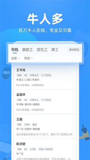 6、“牛人”板块:让您更容易发现适合您的优秀工人。