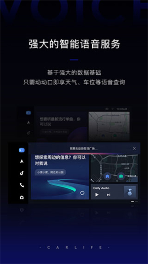 手机百度CarLife是一个专为车主打造的车载系统,用户通过它可以直接连接自己的车机设备进行使用操作,同时还可以查看车辆信息、导航路线和电话等。该软件支持多种语音交互功能来帮助用户轻松完成各种任务与设置;同时在驾驶过程中提供智能导航服务以及安全出行提示等等!