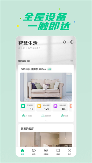 360智慧生活app是由360智能家居管理软件推出的一款360官方打造的智能家居设备连接工具。这款应用可以帮助用户在手机上进行智能控制,包括插座、灯光、窗帘等等,让你的生活更加便捷。360智慧生活APP是支持360品牌旗下的智能硬件产品使用,让用户享受更加智能的生活服务!