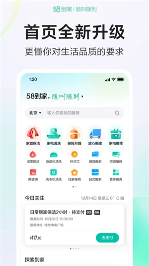 吉林到家师傅接单app是58到家的维修师傅版,58到家中安装师傅端是一款为用户提供家电清洗、清洗家电等上门服务的软件。58到家里安装师傅端支持全国所有城市,不管您在哪里都能找到附近的师傅!