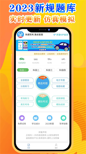 快通驾考app是为科目一和科目四的学员提供考试练习的应用,涵盖科二和科目三的所有知识点、题库内容等。