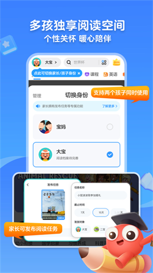 1、通过智能AI算法技术自动调整用户的个人资料及收听喜好的个性化声音库以满足不同年龄段儿童的需求。