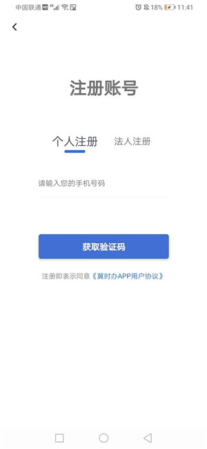 1、打开冀时办app,点击右下角“我的”,选择个人头像登录/注册。
