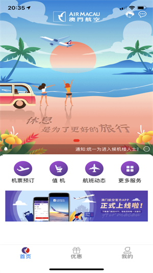 3、澳门航空手机客户端将及时向您的客户传递澳门航空最新的优惠政策和促销方案。澳门航空手机客户端能保证您在预订过程中不会错过任何重要信息;