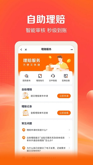 1、【理赔】在线自助办理理赔申请,最快当天出赔,省心又省力。
