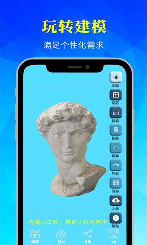 易建app破解版是一款功能强大的3D建模软件,该软件为各位用户提供了各种不同的建模方式以及工具。通过这款软件大家可以轻松的将手机变成一个专业建模器使用,在手机上就能进行3d建模了。软件支持的建模模式十分多样,包括三维和圆形,你可以在这里快速创建出多种不同的模型效果,并且它还能够自定义建模参数设置,让建模变得更加方便快捷!另外,你还可以对建模中的模型进行重命名、删除、导入文件等操作,非常便捷好用,有需要的小伙伴们欢迎前来下载使用哦~