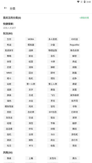这里有着休闲益智类、角色扮演类、经营养成类、策略竞技类等几十个分类;