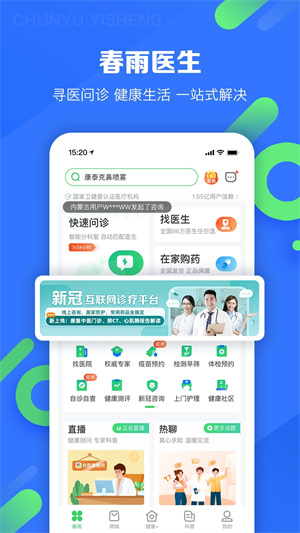 春雨医生是一款非常实用的医疗健康服务软件,由广州康佳网络科技有限公司倾力打造而成。该软件界面清新简洁,功能齐全且强大,能够为用户提供在线咨询、预约挂号、线上问诊等多种便捷的服务体验;同时还可以与全国三甲医院医生沟通交流,轻松解答患者的病情困扰以及疑难问题,从而实现高效地获取专业的医疗信息和指导意见,帮助用户解决问题或进行远程就医操作。除此之外,这款软件还提供了实时更新的健康资讯内容以供参考使用,让你足不出户就可以了解各种健康知识并且还能在平台上发布自己的健康动态并和其他用户一起分享经验来相互学习进步,感兴趣的小伙伴不妨下载试试看哦!