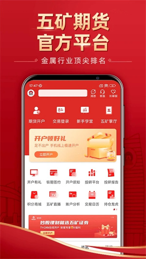 五矿期货app是一款由银联期货有限公司开发的一款手机炒股软件,软件拥有丰富的行情数据、智能交易等服务功能。在这里用户可以随时随地查看最新的市场动态信息和市场走势情况,同时支持在线进行实时开户操作;并且还有海量的投资资讯为你提供!喜欢的朋友欢迎下载体验。
