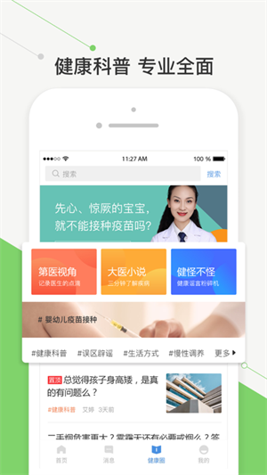 【手机看病】足不出户就能问医生,专家在线回复不限次数,图文语音随意切换,更可根据症状自检选择最合适的医院及科室。