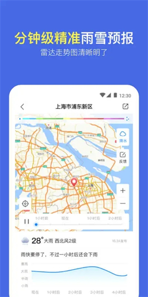 分钟级降水量预报:可准确预测2小时内是否下雨或高温,精准预报几点下雪