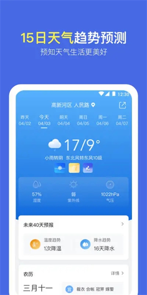 15天天气:知道今天适合穿什么衣物,出门前做好准备。