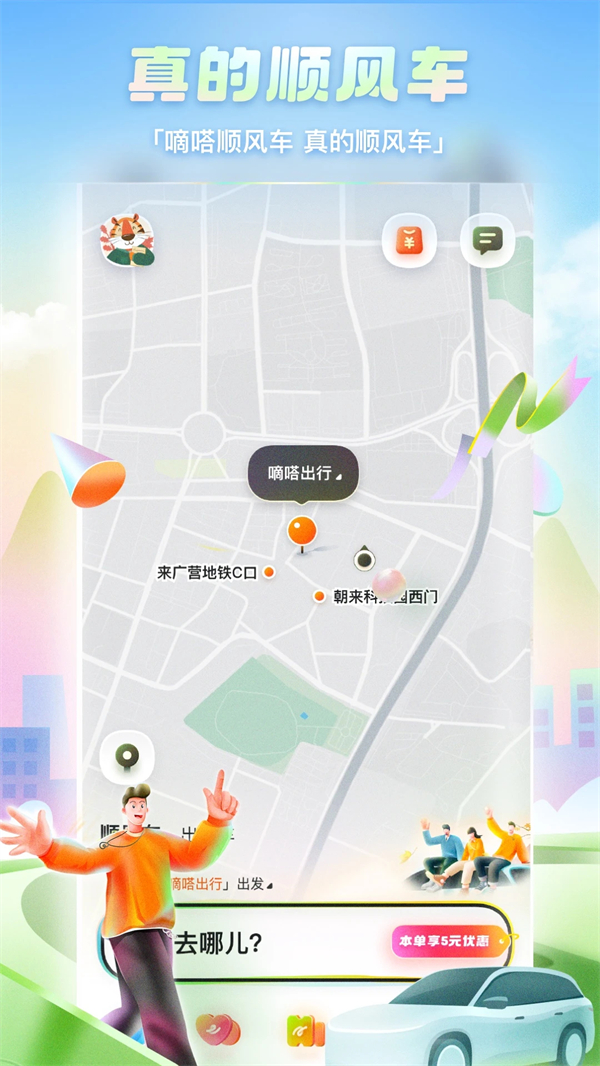 嘀嗒拼车APP推出了全新的界面简洁易懂的功能模块和服务: