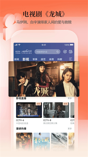 CCTV手机电视是中央电视台CCTV手机客户端,是国内首个支持全屏高清直播和点播的应用。