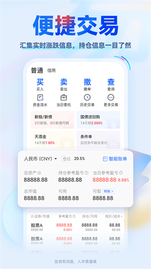掌证宝app是由深圳市证券交易所有限公司打造的一款专业投资理财平台,软件内为用户提供股票、基金、融资融券等多种交易服务。软件还采用全新的UI设计和交互体验,给人眼前一亮的感觉和使用体验。软件不仅可以让用户随时随地了解最新的行情动态信息,而且还可以帮助用户更好的管理自己的账户以及资金情况!