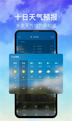 预报15天内的天气状况,提前知晓一周内是否有雨雪,做好防护措施。