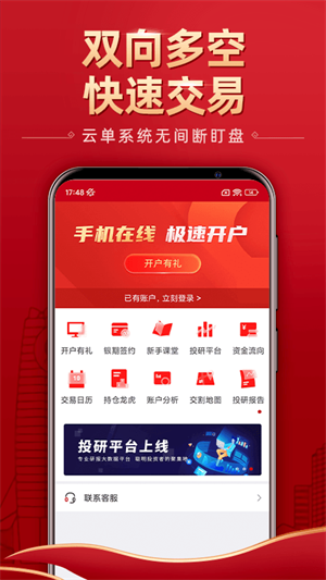 一键登录,便可享受极速新股申购、国债逆回购、国泰君安、沪金港通、中期两融、大商所、郑重承诺、中国证监会批准的第三方资金监管机构之一。