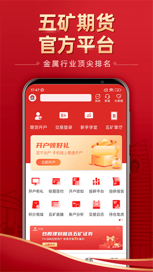 五矿期货app是一款由银联期货有限公司开发的一款手机炒股软件,软件拥有丰富的行情数据、智能交易等服务功能。在这里用户可以随时随地查看最新的市场动态信息和市场走势情况,同时支持在线进行实时开户操作;并且还有海量的投资资讯为你提供!喜欢的朋友欢迎下载体验。