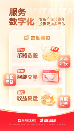 国泰君安君弘app是一个专为国基证券打造的手机应用程序,旨在为用户提供便捷、高效的投资服务。它不仅支持多种交易方式和实时行情信息查询功能,还具备强大的数据分析能力,帮助投资者更好地了解市场动态。软件采用了先进的加密技术保护用户的隐私安全,让投资者无需担心投资风险。国航君宏APP提供了全面的投资产品选择与理财咨询等工具使用户能够轻松找到适合自己投资策略的应用场景。