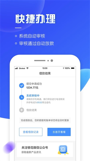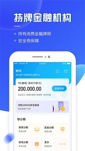 够花是海尔消费金融股份有限公司推出的一款线上贷款软件,这款软件可以帮助用户快速借钱、借款以及还款等服务。软件功能十分强大,使用方便快捷,能够为用户提供一站式便捷的服务!
