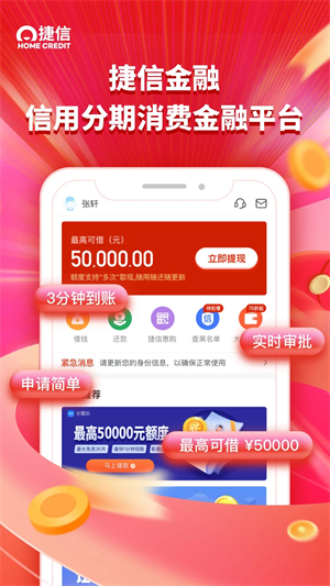 2、快速放款:捷信金融APP为你解决燃眉之急,让你享受快速到账的购物乐趣。