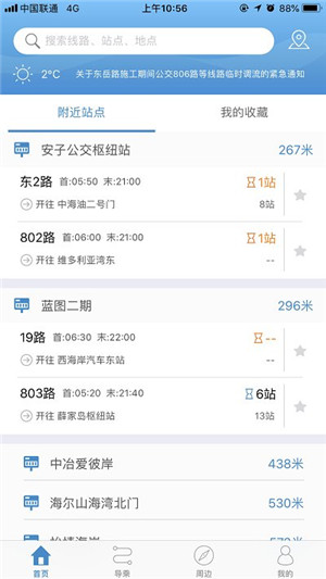 可直接输入线路或站点名称来快速精准获取所需途径站点的数据详情;同时可通过收藏夹将经常使用的地点保存起来。