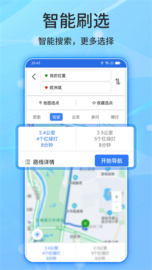 1、智能路线:根据驾车步行轨迹选择最佳路线,及时避开拥堵路段。