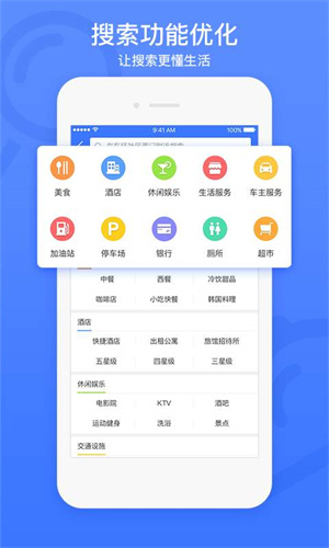 提供周边查询服务,支持全国范围内的加油站点位置查找与显示等操作方式;