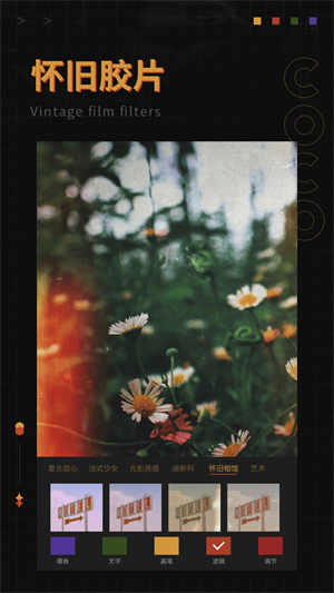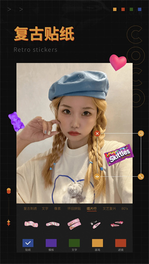 可可修图app是一款非常专业的图片处理应用程序,它具有许多高级的功能和特点,包括滤镜、贴纸、特效、文字等。用户可以轻松地对照片进行美化或拼接,创造出独特的视觉效果和独特风格。