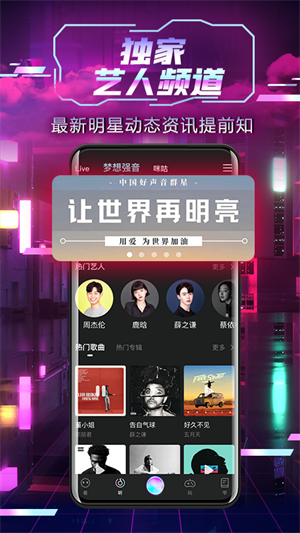 3、通过这款软件也可以让大家自由的选择喜爱的歌曲和其他的用户们一起探讨更多的好声音文化魅力。