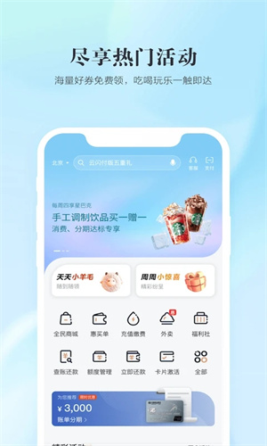 可使用手机号快速绑定卡片支付/分期付款以及其他相关实用工具完成一键式激活或修改密码。