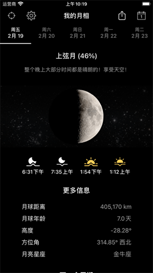 我的月相软件中文版是可以让你在夜晚的时候看到自己的星空,这款app能显示出你的光圈变化。你还能查看到自己当前的天空位置。你还可以通过它来设置太阳、云层等等,非常实用!