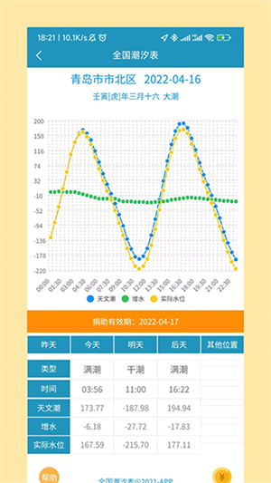 自动保存最近几天的潮汐数据,下次打开时直接从本地导入手机数据进行备份操作,防止因意外事件或流量过高而导致无法继续观看;