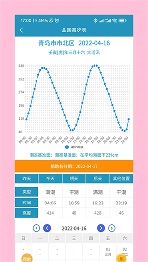 提供全球范围内24小时内最新潮位预报,并支持逐天预报与实时更新,让用户能够及时掌握最新的潮流趋势和变化情况;