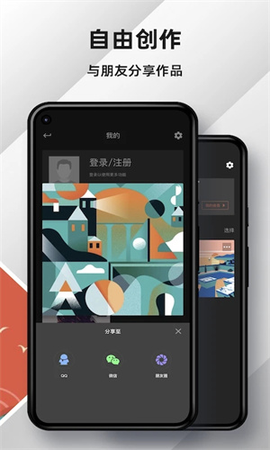 你可以把自己的创作成果发送给好友,或者将其上传至社区中欣赏他人作品;