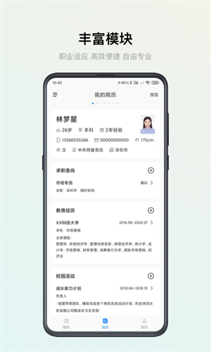 智能简历app免费版是款非常实用的个人求职助手,这里有海量专业的职业信息内容和面试技巧。软件操作起来非常简单易上手,用户可以根据自己的需求选择自己喜欢的模板进行制作使用!