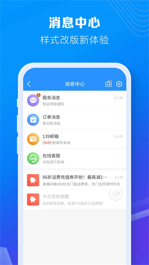 首页更简洁,新增更多便民生活入口,提供丰富多彩的功能定制化设置,“我的”一键直达常用号码归属地“我的号码”,随时随地的贴心管家式优质服务。