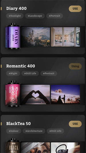 提供了数十种滤镜供用户使用,无论是自然风光、胶片质感还是高级色彩,用户都能在这里找到合适的选择;