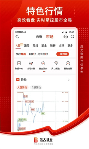 光大证券app是专为广大投资者打造的一款手机炒股理财软件,由北京华龙投资咨询有限公司精心打造而成。光大证券app以“金融科技赋能”的核心价值观打造,集交易、行情、资讯于一体,致力于为用户提供专业便捷的投资服务体验。该平台通过创新的互联网技术手段和丰富的产品资源,为客户提供全面的市场分析与市场动态信息和服务;采用先进的大数据技术进行股票买卖决策支持,确保了交易流程的安全性和透明度。