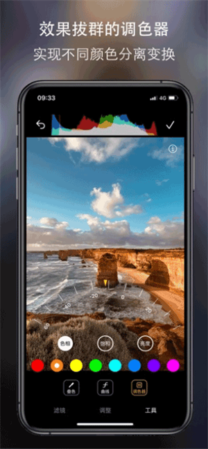 5)照片编辑:提供了许多照片拼接功能及编辑器(如裁切、旋转和翻转)、滤波器、亮度的对比度调整等;