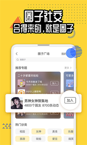狐友app是网易官方推出的一款社交软件,用户可以选择自己喜欢的圈子加入其中一起聊天讨论各种话题和活动。在这款软件中你可以轻松找到志同道合的朋友、与他人进行交流沟通,结交更多好友!感兴趣的话就赶紧下载体验吧!