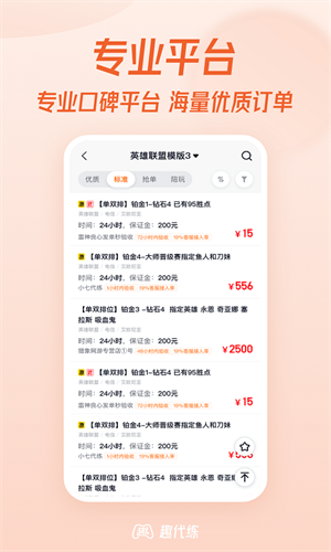 1、在线找代练:随时随地想玩就玩,快速高效找到适合自己的代练订单,