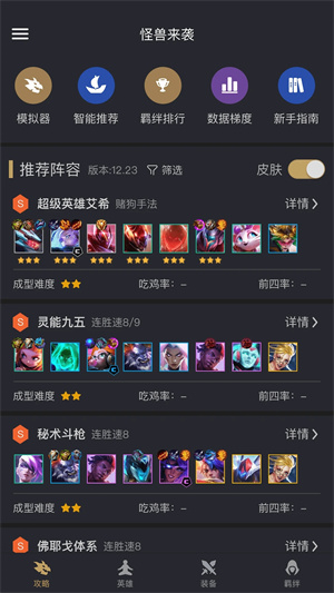 该软件提供了各种英雄阵容组合策略,让玩家能够更全面地理解装备和技能。这种策略使得他们可以更好地理解角色之间的战斗情况和敌人特性,同时也能够提高他们的生存能力和应对对手的能力。