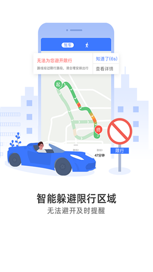 7、“限行路段”模块:根据道路拥堵情况为您智能安排最佳路线,避开高速高峰。