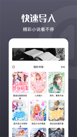 《萤幕阅读》是一款免费追书电子书阅读器,拥有千万部小说库,涵盖言情穿越宫斗宅腐女青春校园都市异世重生种田爽文;全本小说全部正版授权,全站小说极速秒杀全网小说!