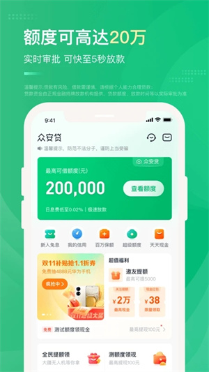 众安贷平台以“安全保障”的使命,致力于为消费者提供信用贷款资讯及分期购买服务的平台。