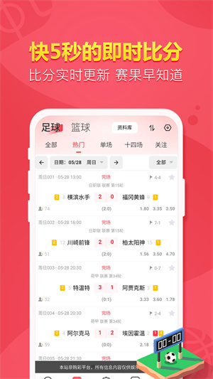 1、【即时比分】足球、篮球比分极速更新,快人一步了解体育圈新鲜事;